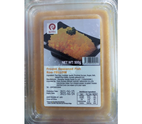 Trứng cá ốt tẩm gia vị đông lạnh vàng